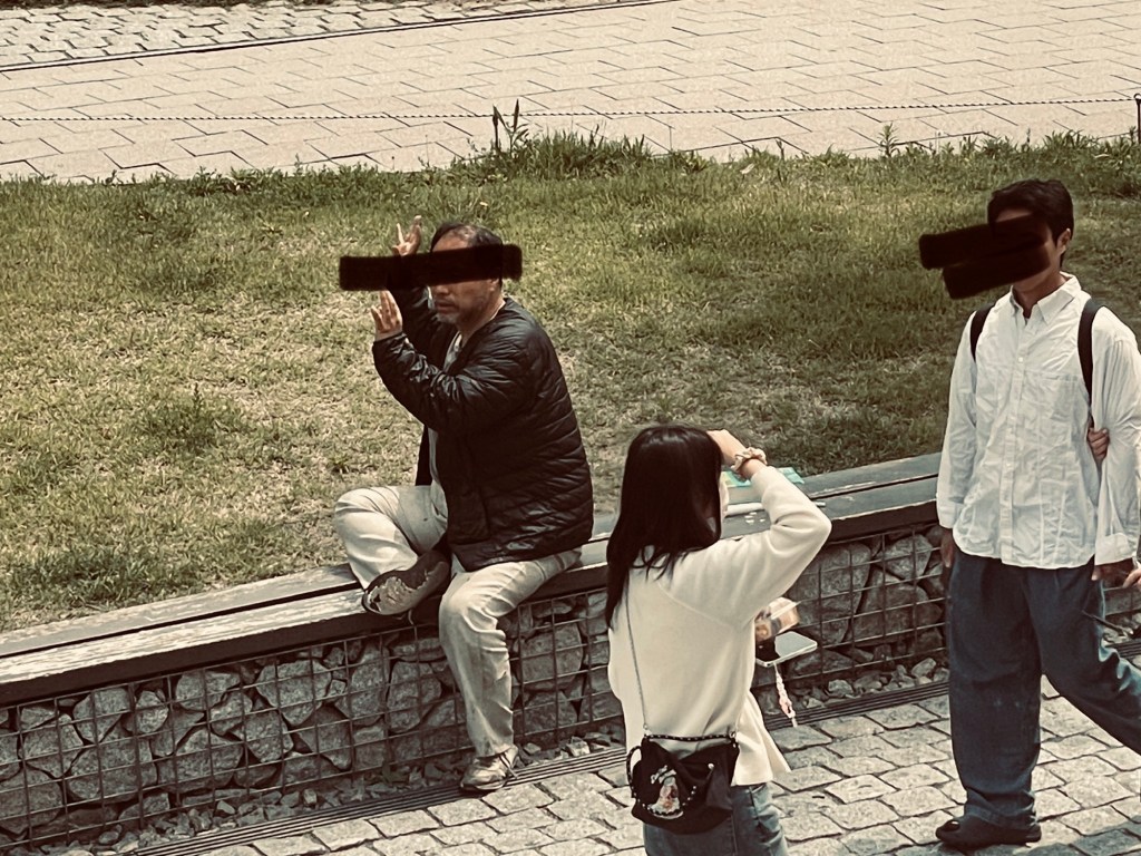 많은 우리나라 사람들 그가 있는줄도 모르고 폰을 본체 지나간다
